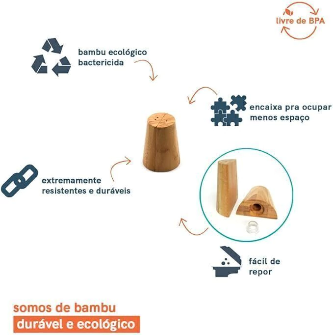• Durável e higiênico: o bambu é um material resistente e com propriedades que evitam a proliferação de bactérias.